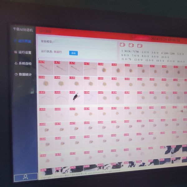 The AI sorting machine for coffee beans primarily leverages visual technology and AI to capture images of coffee beans through a camera. These images are then analyzed and identified using a pre-trained AI model. The model can learn and distinguish different types of defective beans, including black beans, moldy beans, and damaged beans. The result is accurate and precise screening of coffee beans.